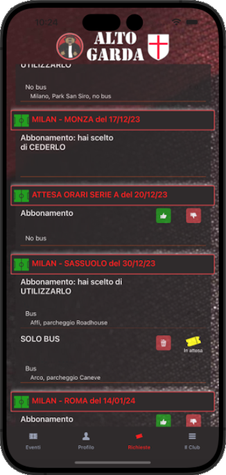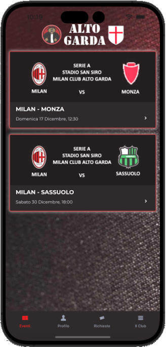 La pagina degli eventi (fig. 3) permette di avere un'anteprima degli eventi organizzati dall'Alto Garda Milan Club per seguire la nostra squadra.
