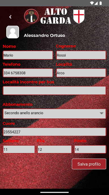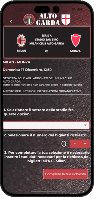 Un'ulteriore schermata (fig. 7) permette di gestire i dati dell'abbonamento con A.C. Milan.